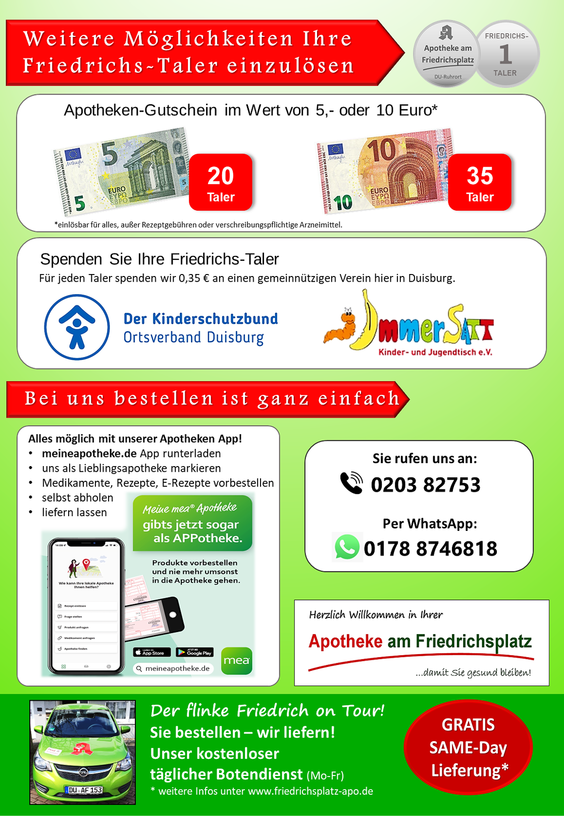 Sollten wir etwas nicht vorrätig haben oder Sie es einmal nicht zu uns schaffen, bringen wir Ihnen Ihre Arzneimittel nach Hause *